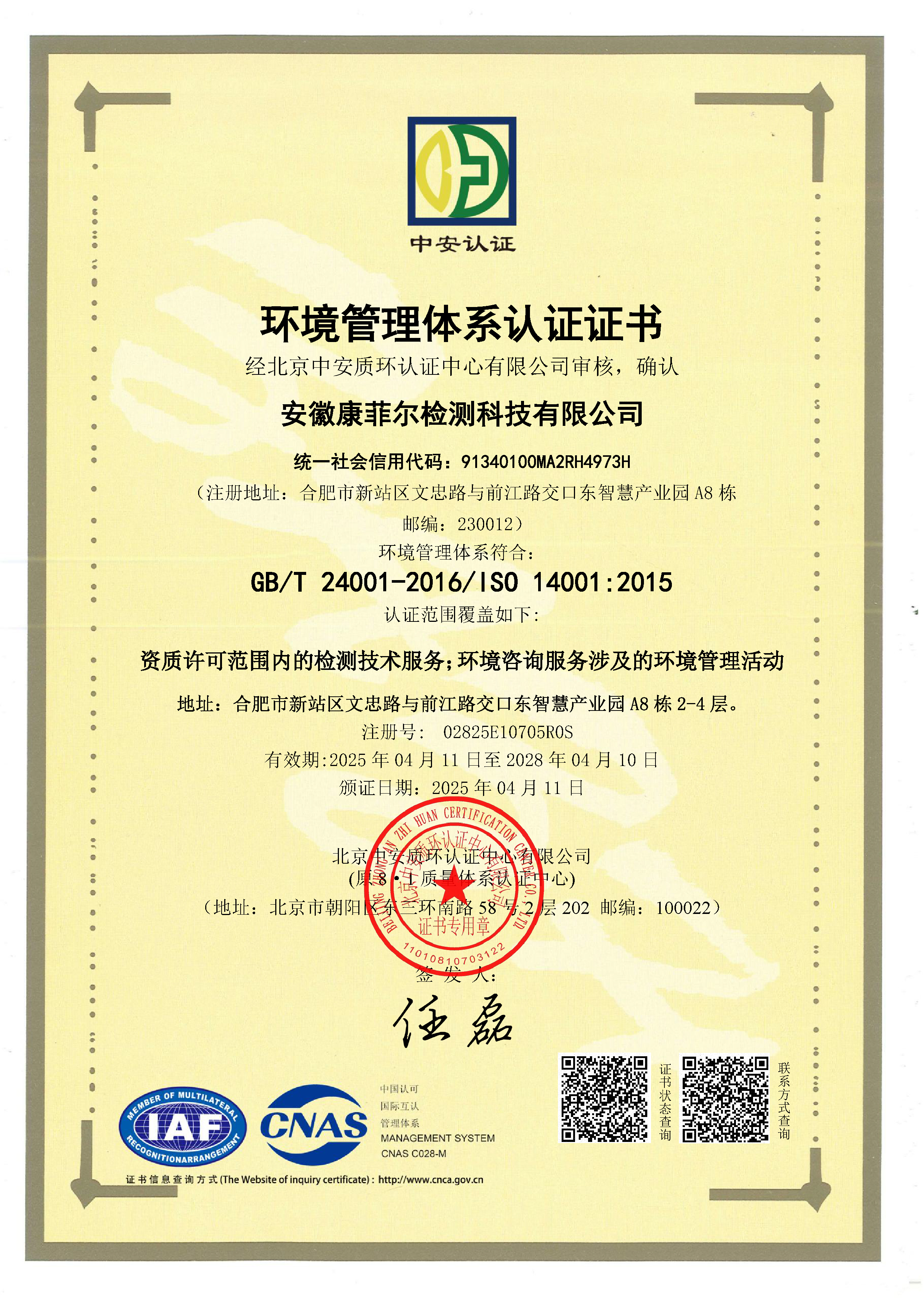 康菲爾檢測科技,組建于2016年,注冊成立于2018年,注冊資金2000萬,上市公司(股票代碼:688659)全資子公司。“雙C”(CMA&CNAS)認證認可實驗室、高新技術企業、科技型中小企業,通過了三標一體化體系認證,是環境保護領域的綜合型科技服務商。
